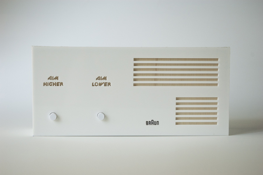 My work focuses on the use of Rams radio design series for Braun, including RT20 table radio, 1961, as a framework to construct narratives that modify the designer original intentions by creating variant surfaces on the object. I am interested in how I can construct narratives by adding new layers to these objects in order to imbue them with personal significance. Through the placement of text and pattern that interrupts the modernist aesthetic, I envisage how we are able to occupy and personalise these objects to our own agenda.