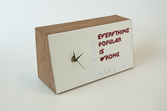 Everything popular is wrong (Oscar Wilde) Wood, Perspex, working clock, 2013