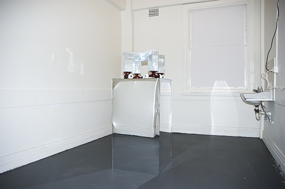 Room 2: Prototype for Sophisticated Living No 1. Mirror tiles, skateboard wheels, mirror perspex