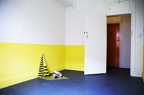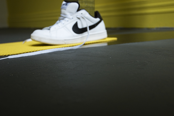 Room 1: Prototype for Sophisticated Living No 2. Mirror tiles, Nike SB shoes, self-adhesive vinyl, plastic mat.