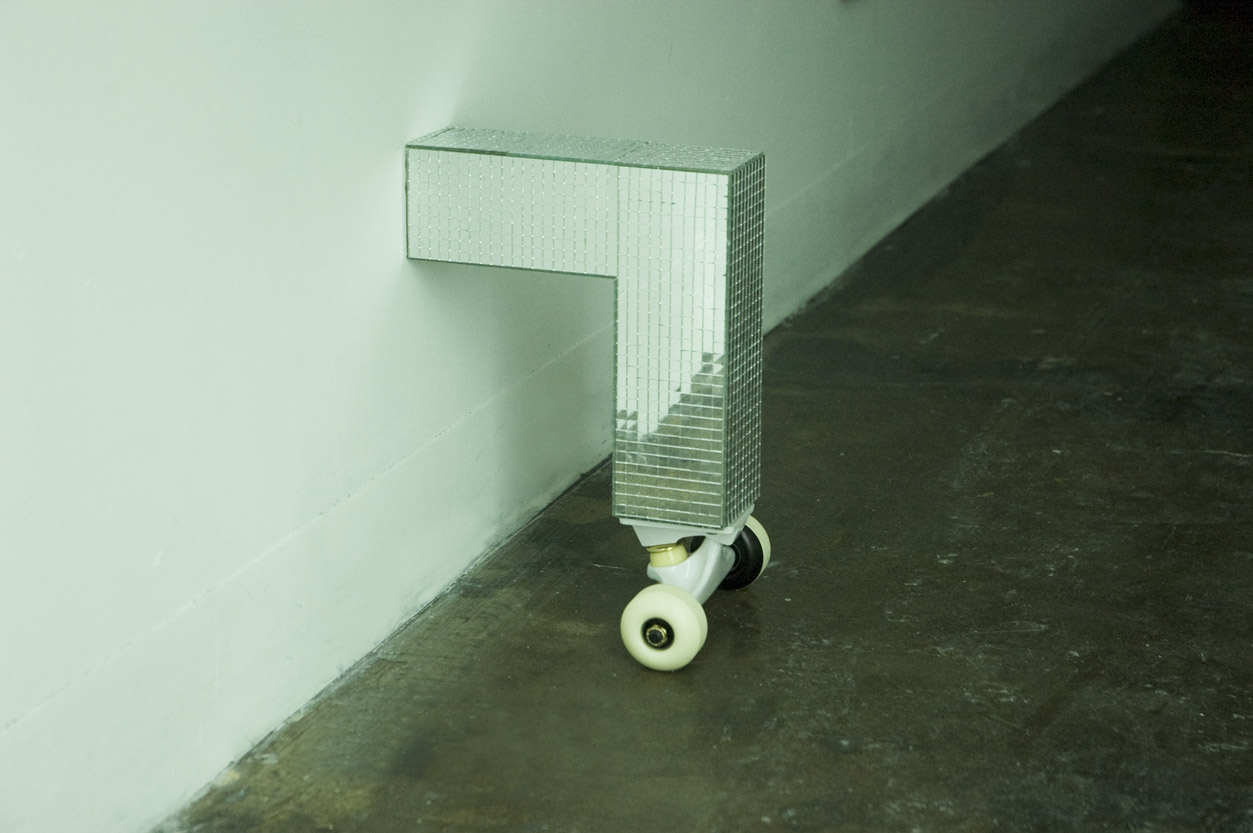 Glenn Walls, Duel Meaning of Things, Wood, baseball bats, mirror tiles, fluorence lights, 2009.